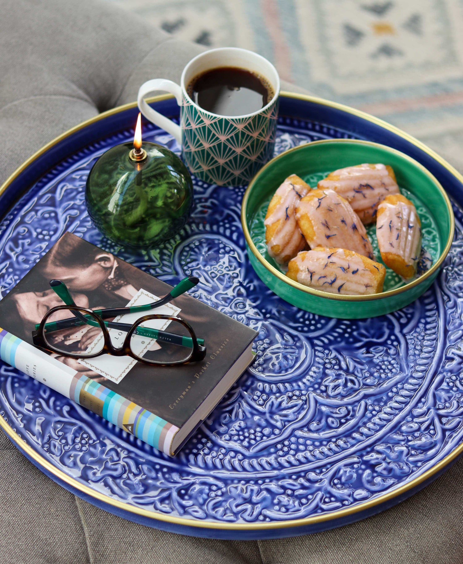 This beautiful indigo blue colour tray is bright, fresh and looks stunning as a centre piece on an island or ottoman or use it to serve up summer cocktails and nibble.