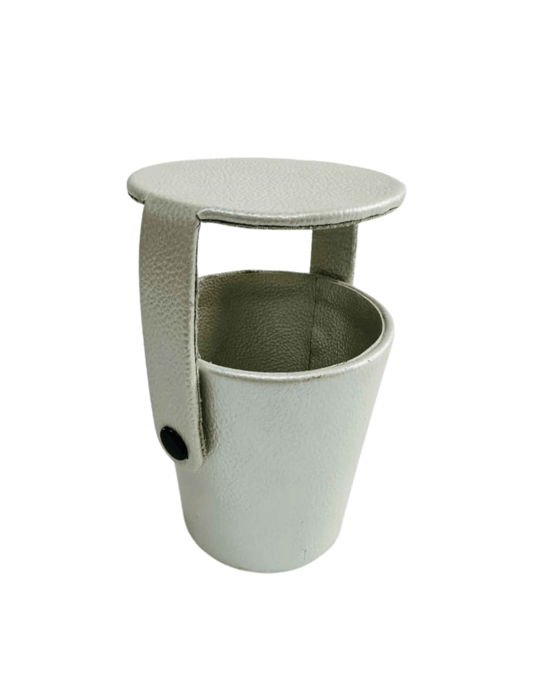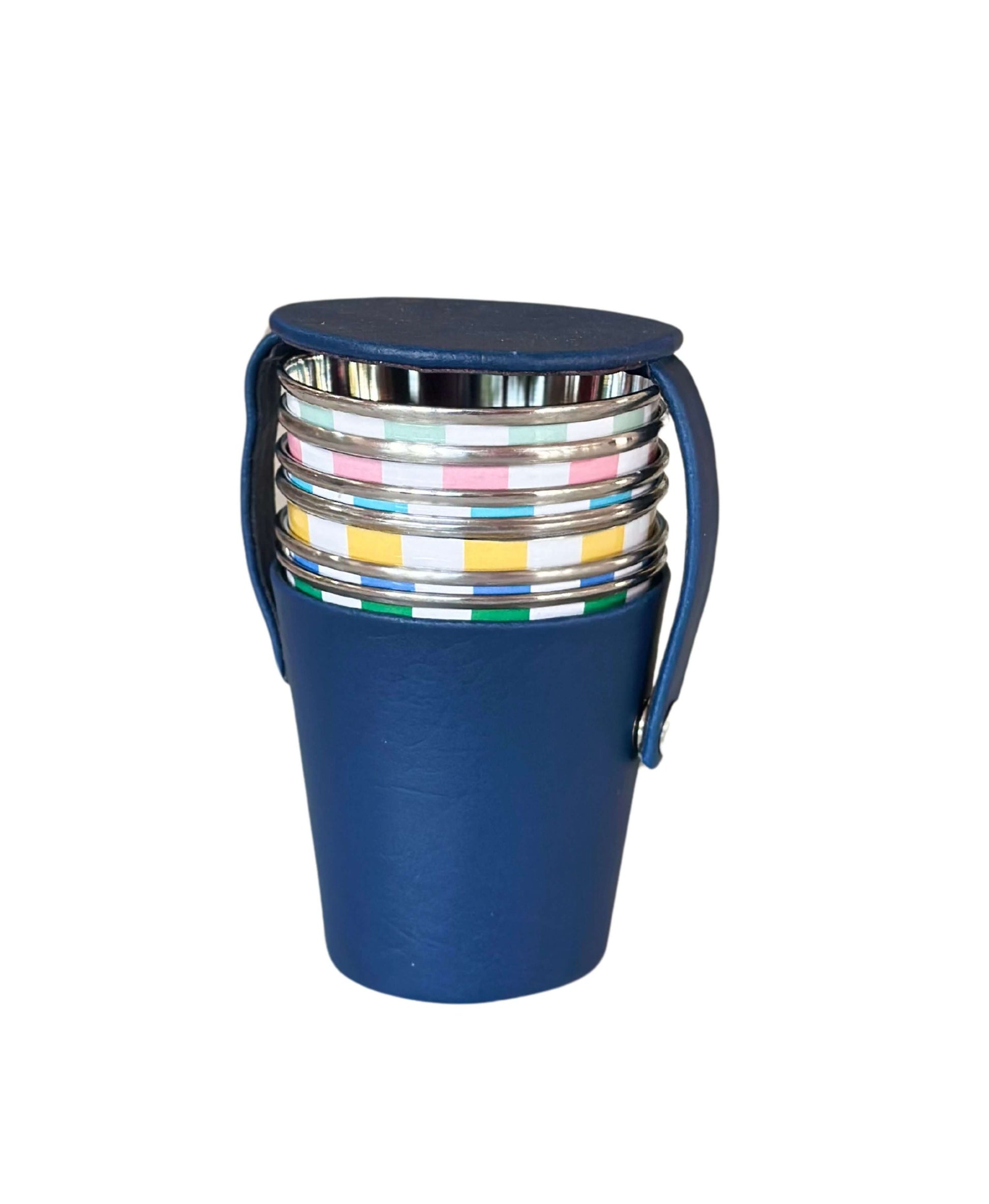 A handy leather holder for your striped tumblers made in a new stylish silver leather with popper closing.
